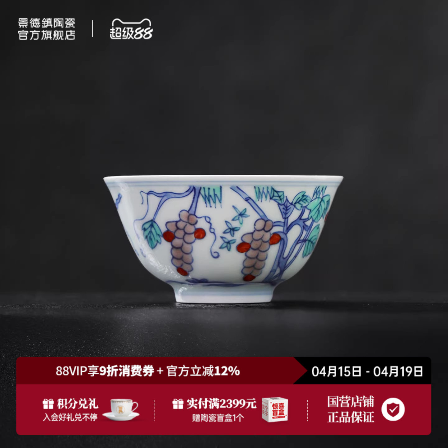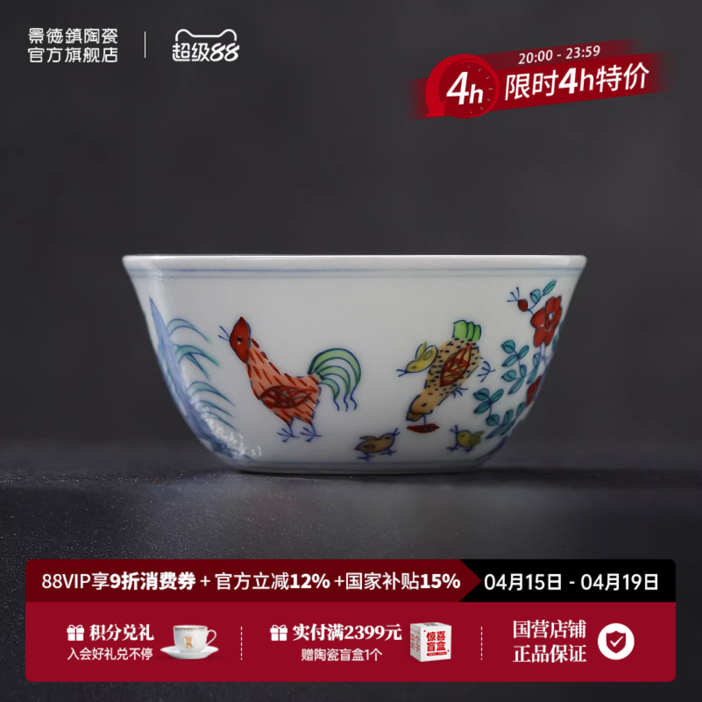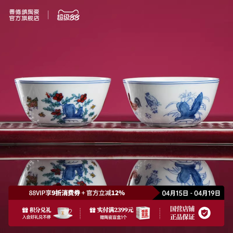 景德镇官方陶瓷青花茶杯主人杯斗彩鸡缸杯品茗杯茶具2026新款送礼