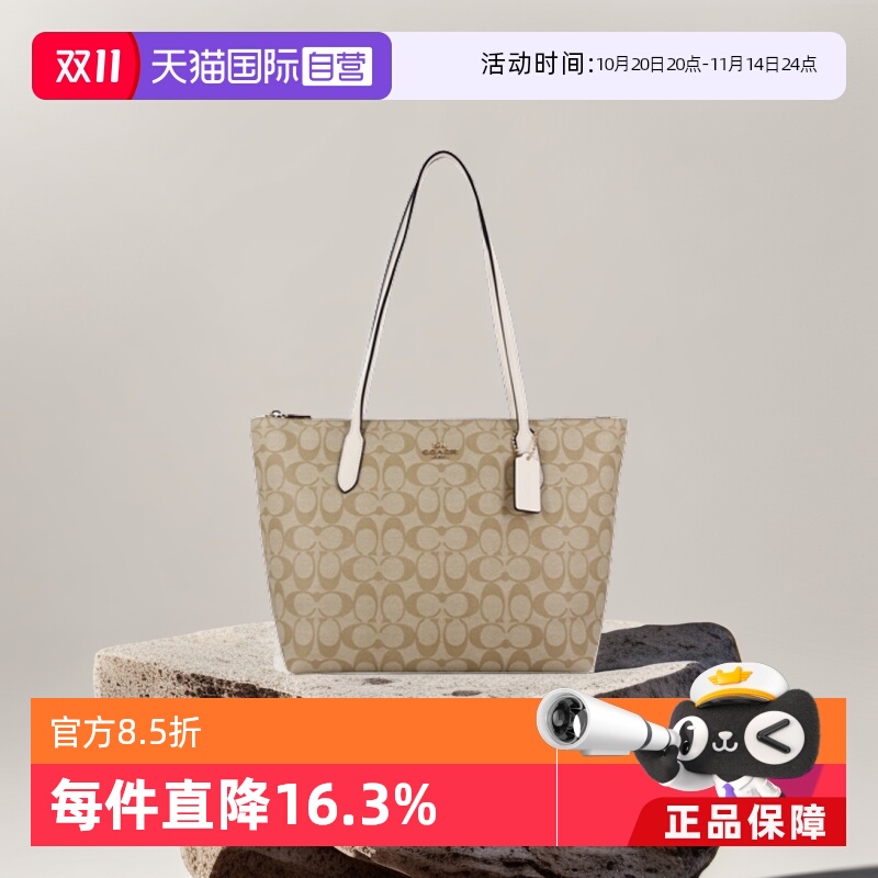 COACH/蔻驰官方 奥莱款女士PVC单肩手提包ZIP老花托特包CBT18