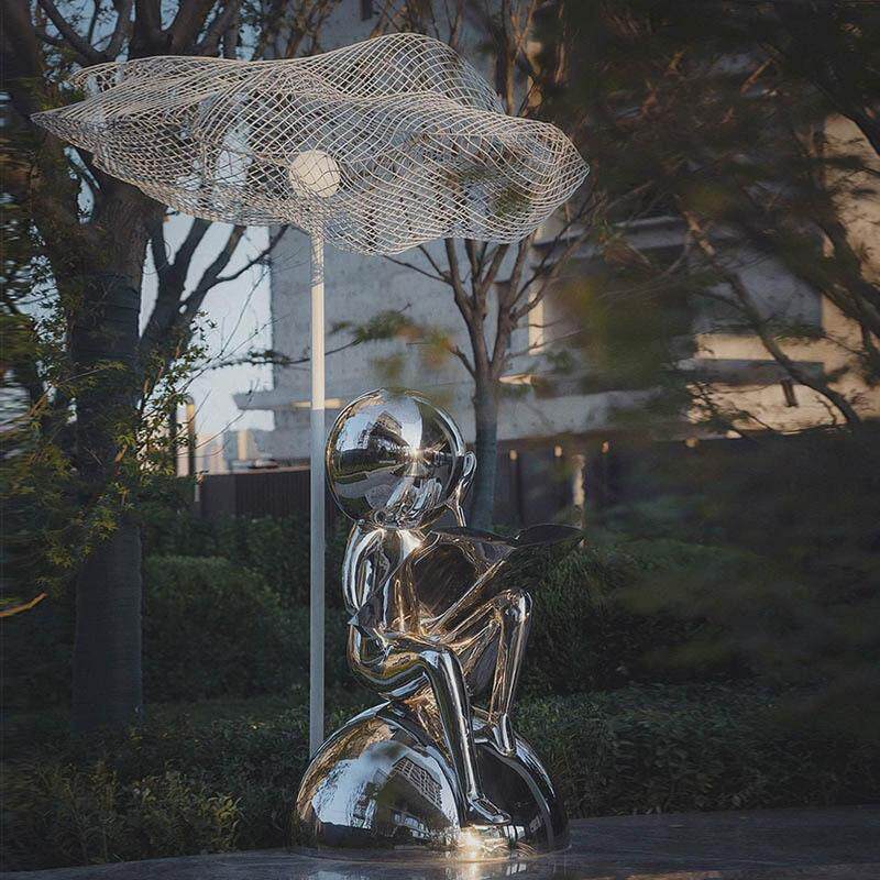 不锈钢雕塑卡通人物现代户外广场公园镜面镂空人像酒店大型水景品