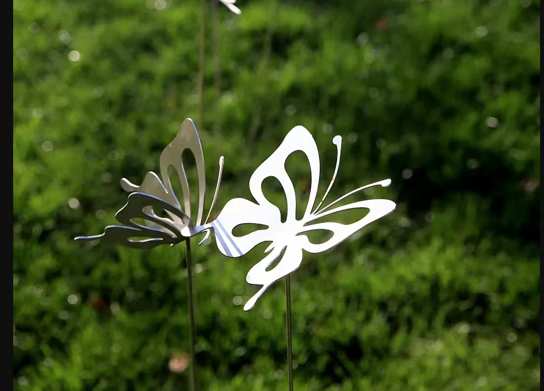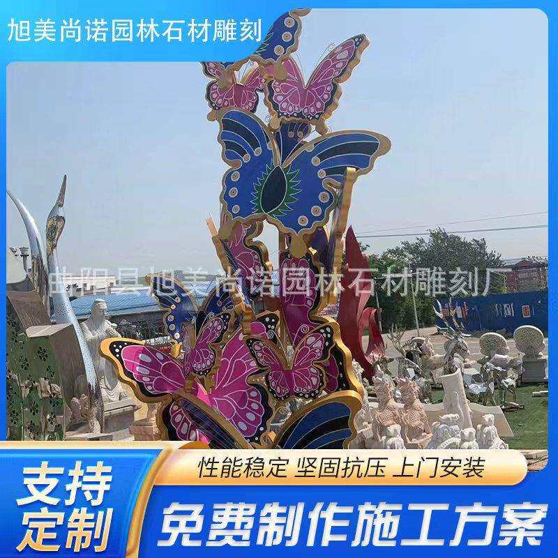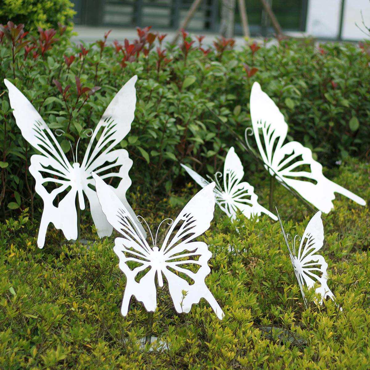 不锈钢蝴蝶摆件落地户外园林景观装饰品草坪公园花园昆虫金属雕塑