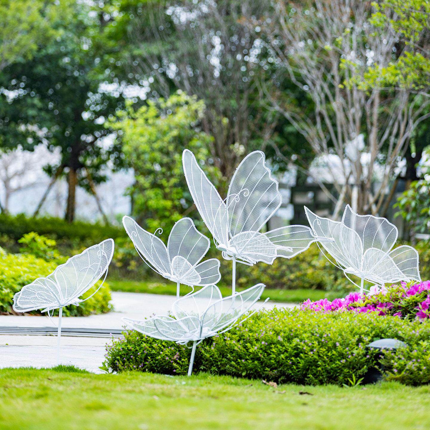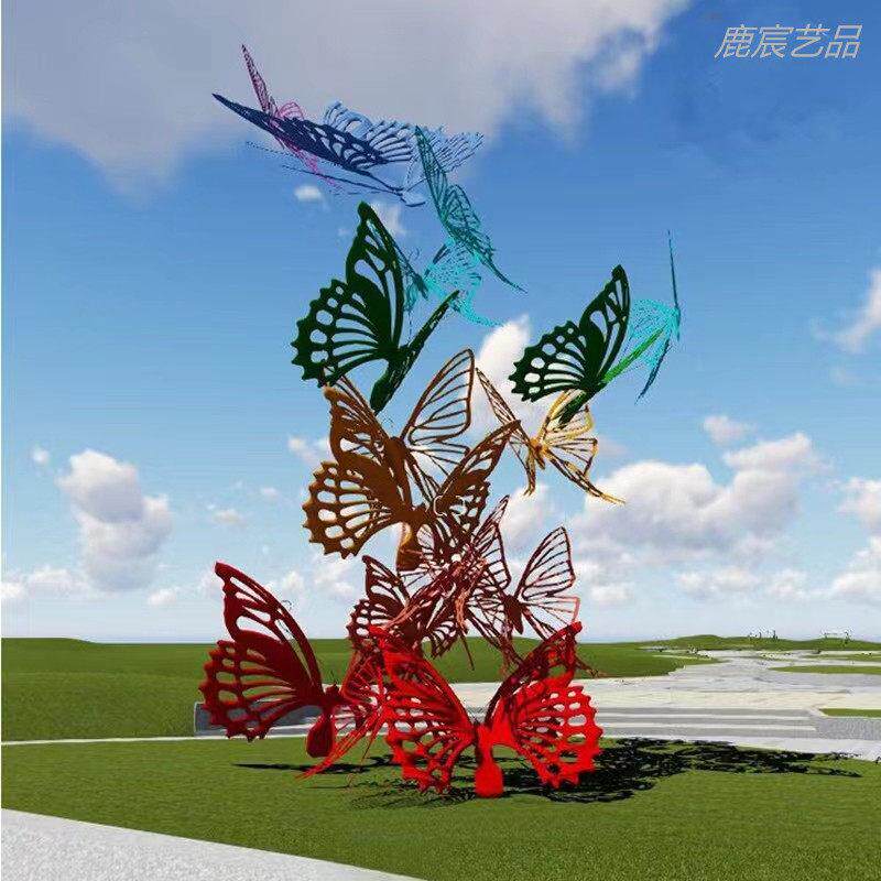 不锈钢蝴蝶户外景观雕塑草坪摆件公园金属摆设花园布置昆虫装饰品