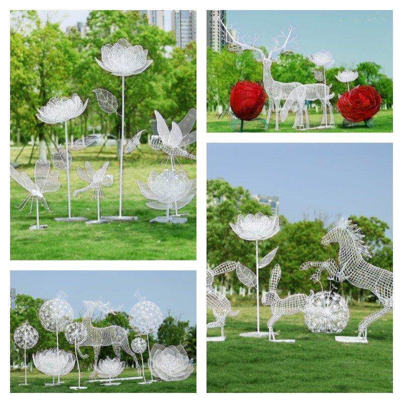 户外不锈钢镂空梅花鹿花朵兔子雕塑蒲公英蝴蝶摆件公园林景观装饰