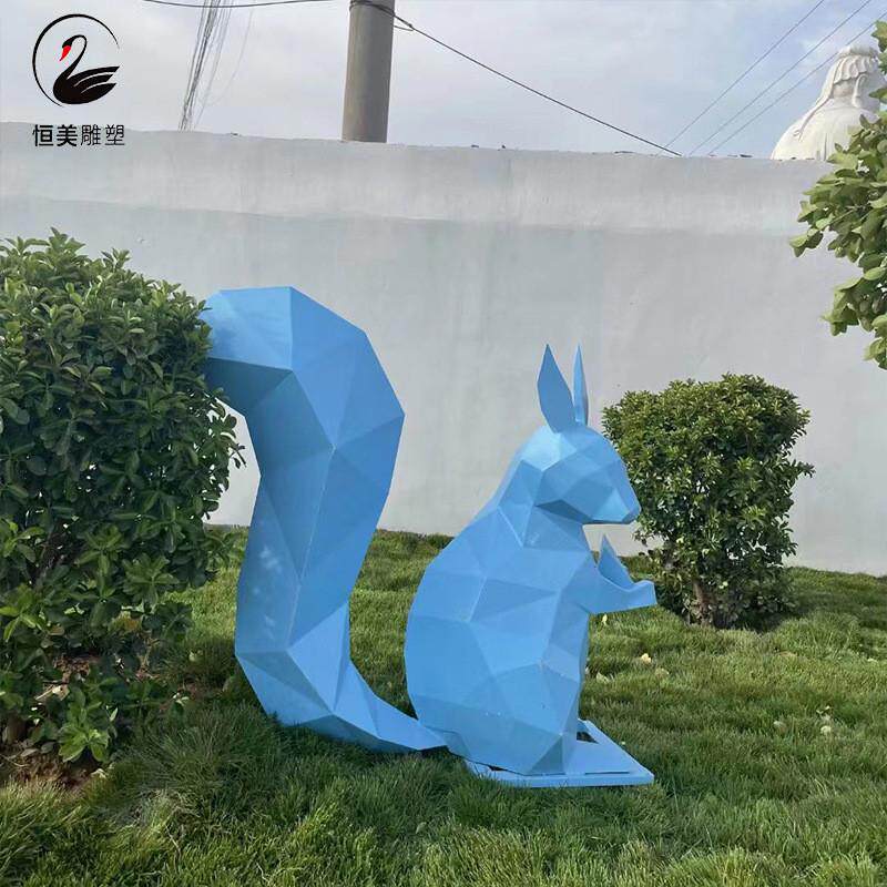 不锈钢彩色松鼠雕塑动物块面几何抽象猫编织金属户外绿地景观摆件