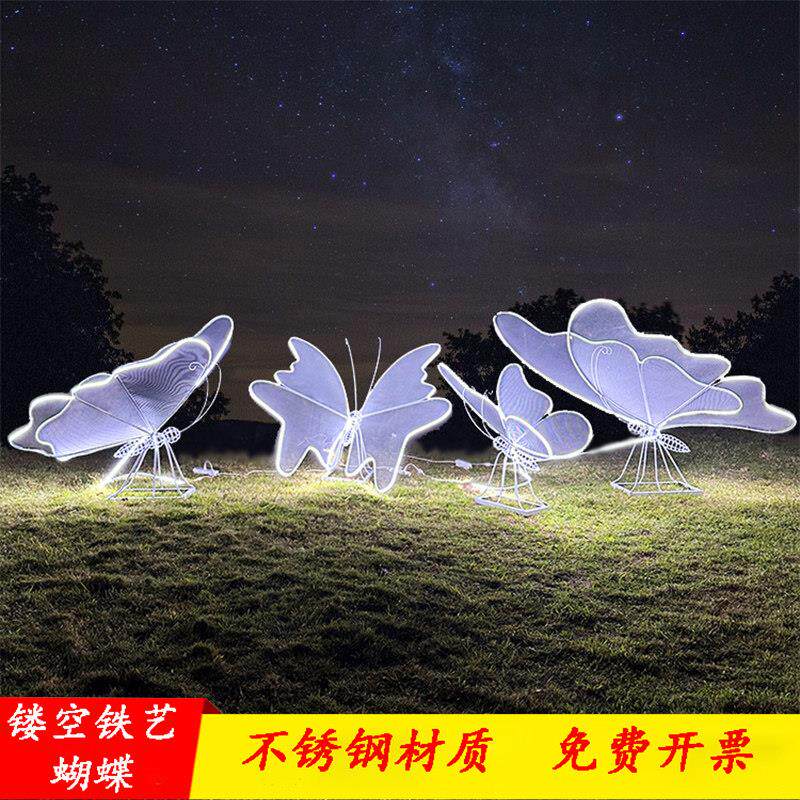 户外不锈钢铁艺镂空蝴蝶雕塑公园林社区草坪发光装饰金属昆虫摆件