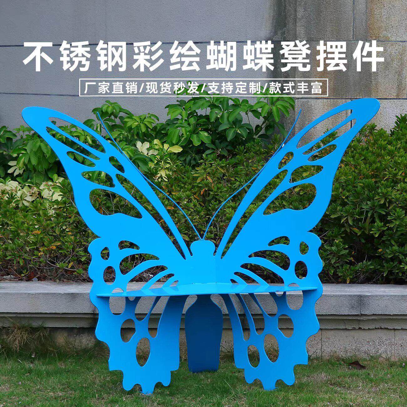 不锈钢铁艺蝴蝶座椅摆件景区公园创意座椅摆件户外景观园林装饰凳