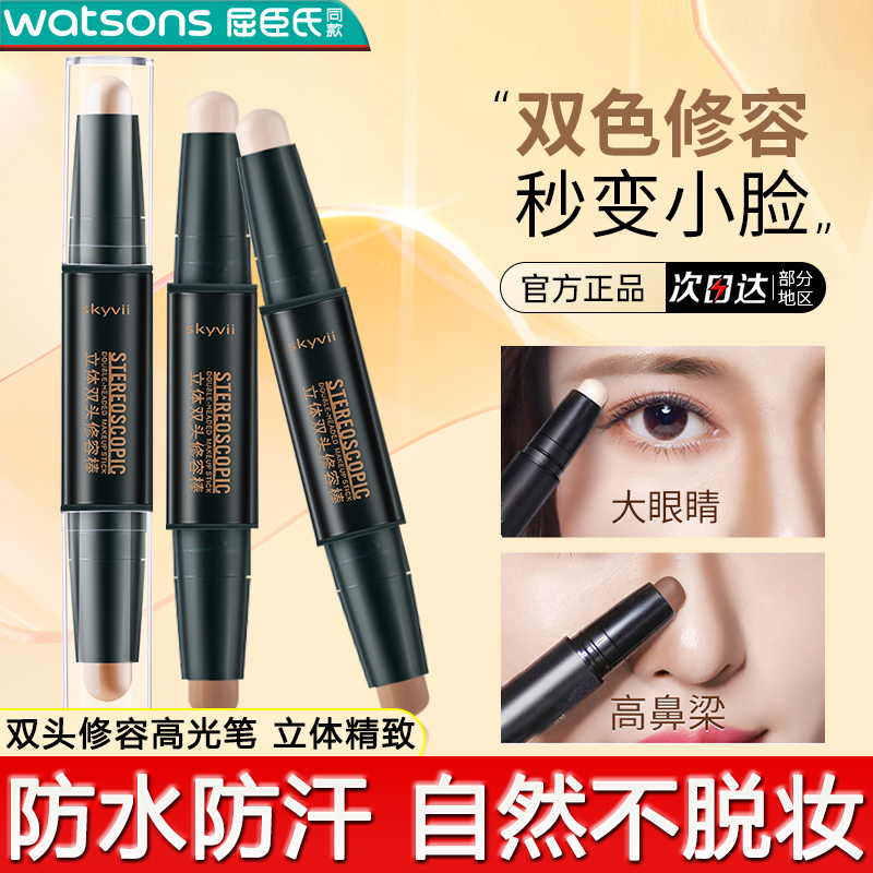 屈臣氏双头两用高光修容棒双色鼻影阴影侧影脸部提亮三合一遮瑕笔