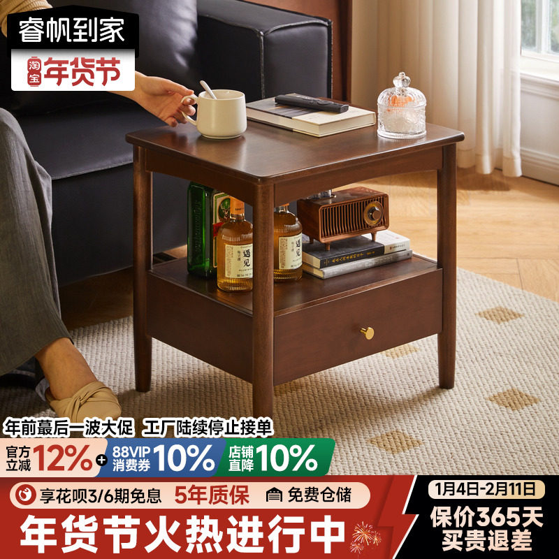 实木抽屉款沙发边几角几客厅正方形小茶几新中式电话桌办公室置物