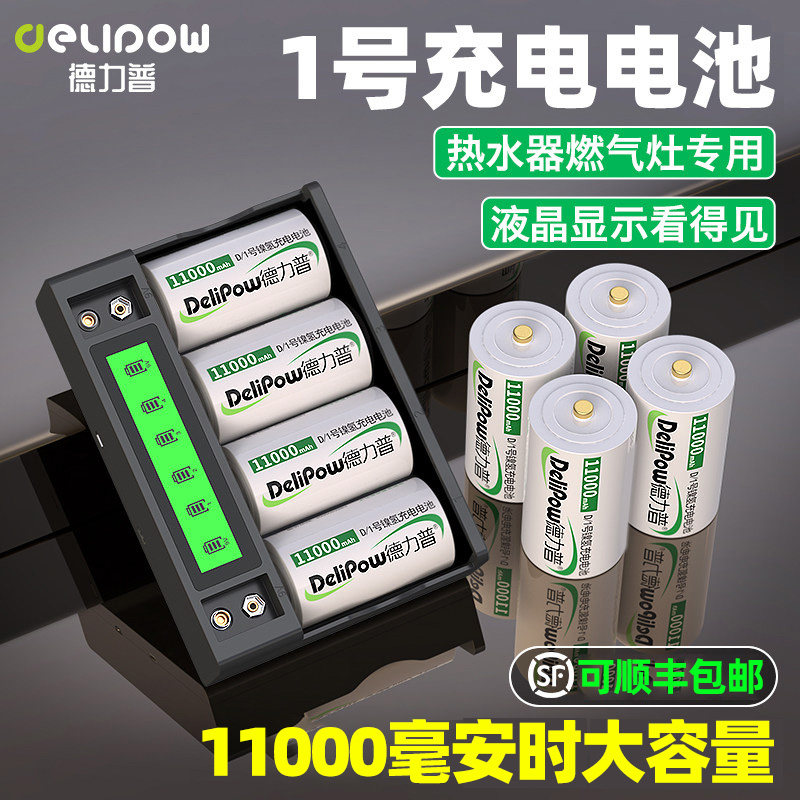 德力普1号充电电池套装大容量通用充电器可充一号燃气灶热水器D型