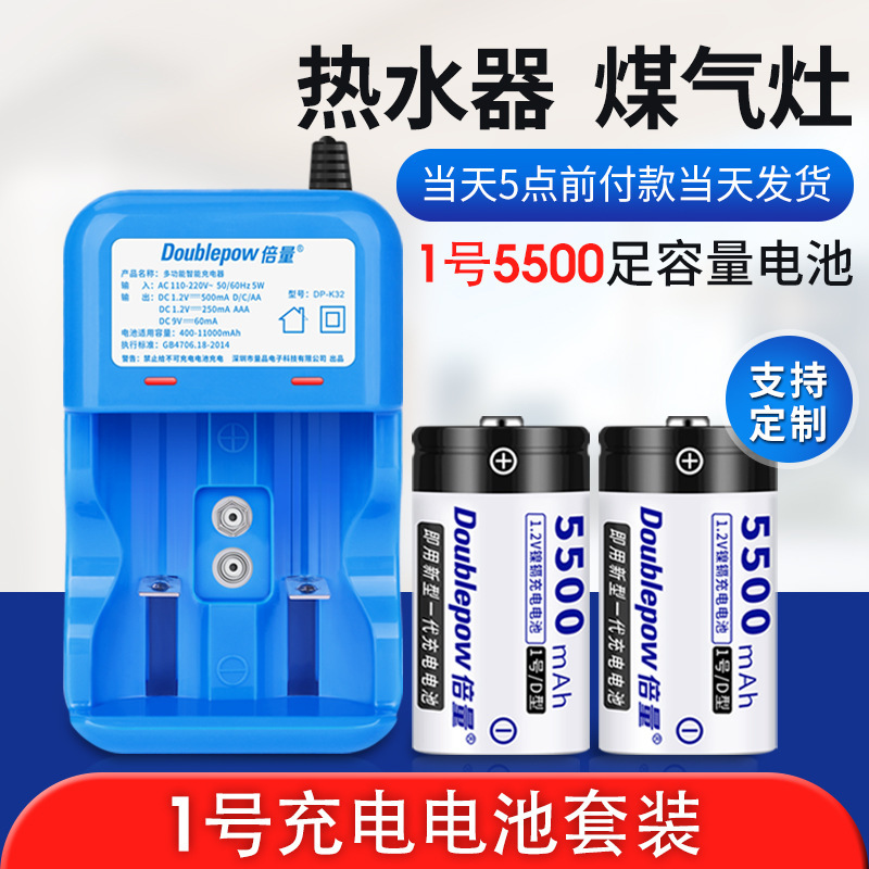 倍量1号充电电池套装D型高容量5500ma煤气灶天然气热水器一号电磁
