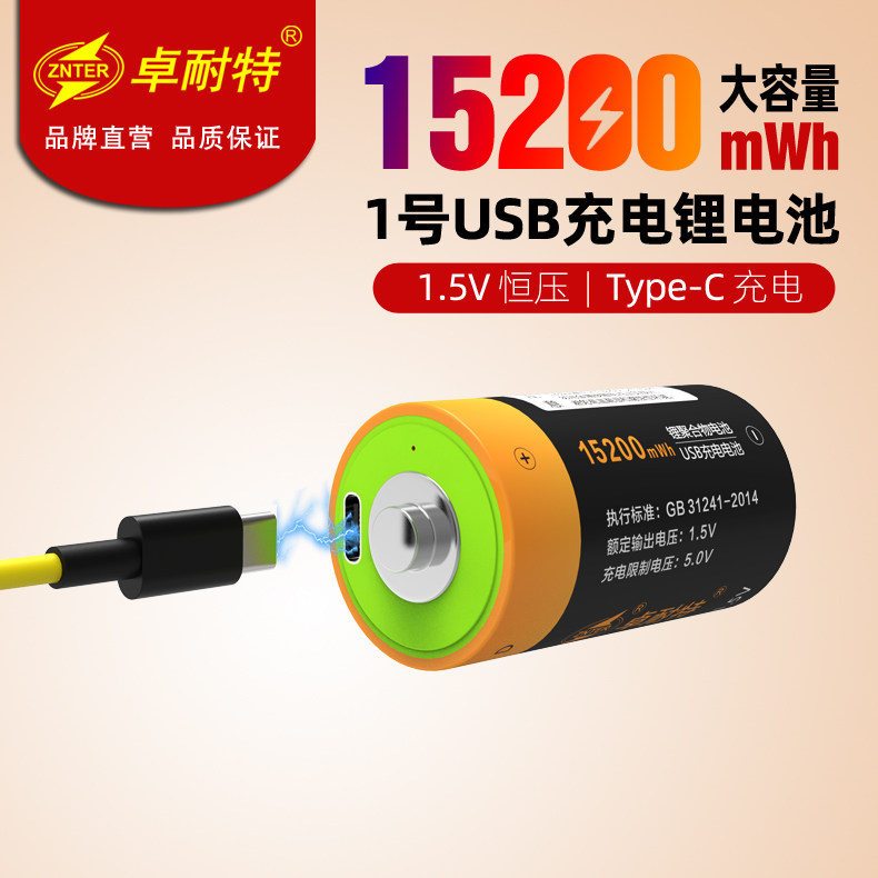 卓耐特1号USB 充电电池套装 燃气灶热水器通用一号D型1.5V锂电池