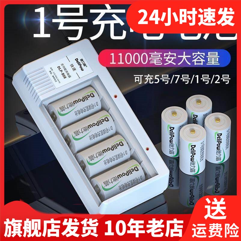 德力普1号电池充电器套装配4节11000毫安一号D型充电电池热水器