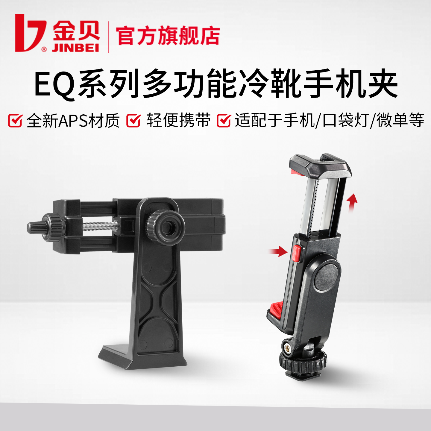金贝EQ系列多功能单/双头冷靴手机夹相机热靴手机固定支架桌面/落地拍照直播摄影三脚架支撑夹子高度可调