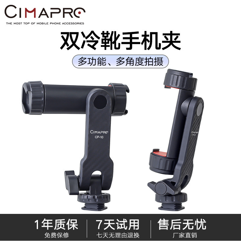 熙熙円CP-10旋转横竖手机夹热靴口相机手机固定支架多功能单反外接手机监视器vlog直播三脚架摄影双冷靴夹子
