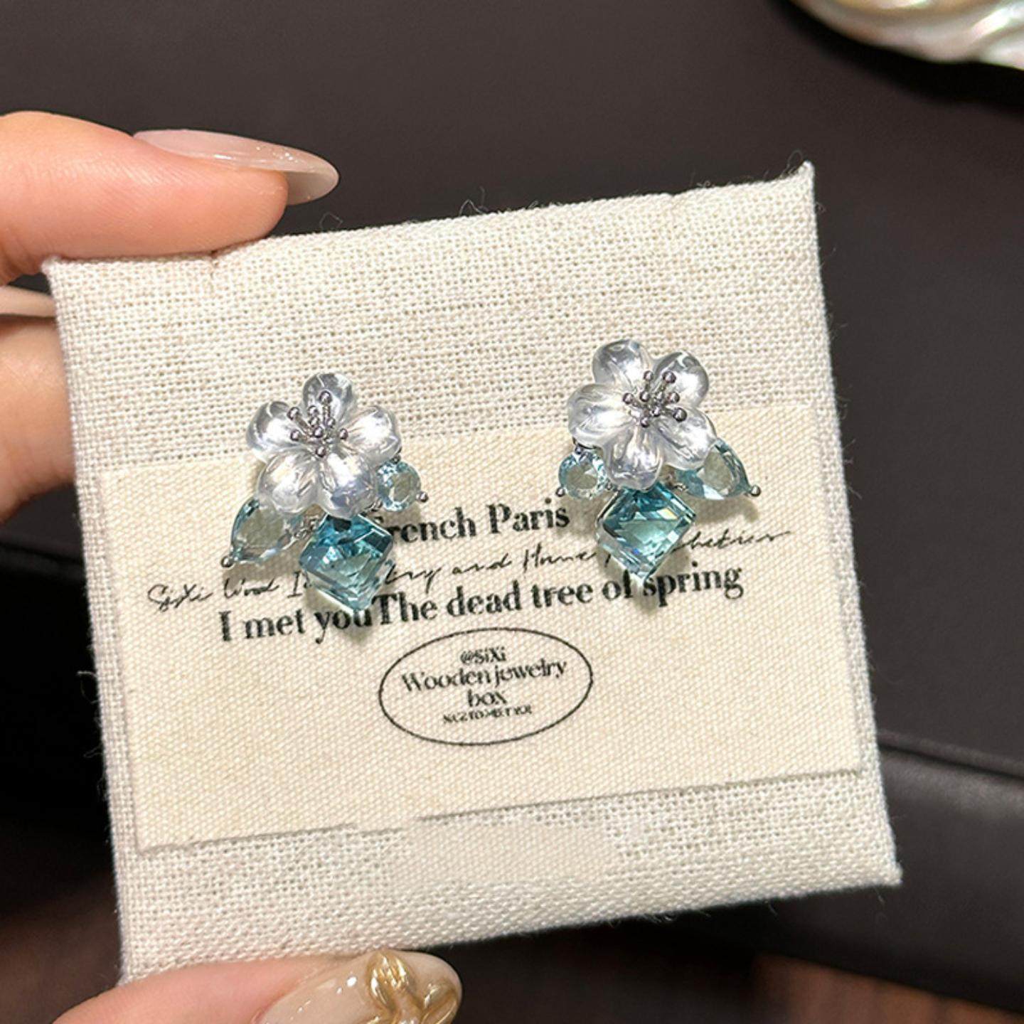 小清新甜美银针锆石水立方水滴水晶花朵耳钉耳环轻奢高级感耳饰女