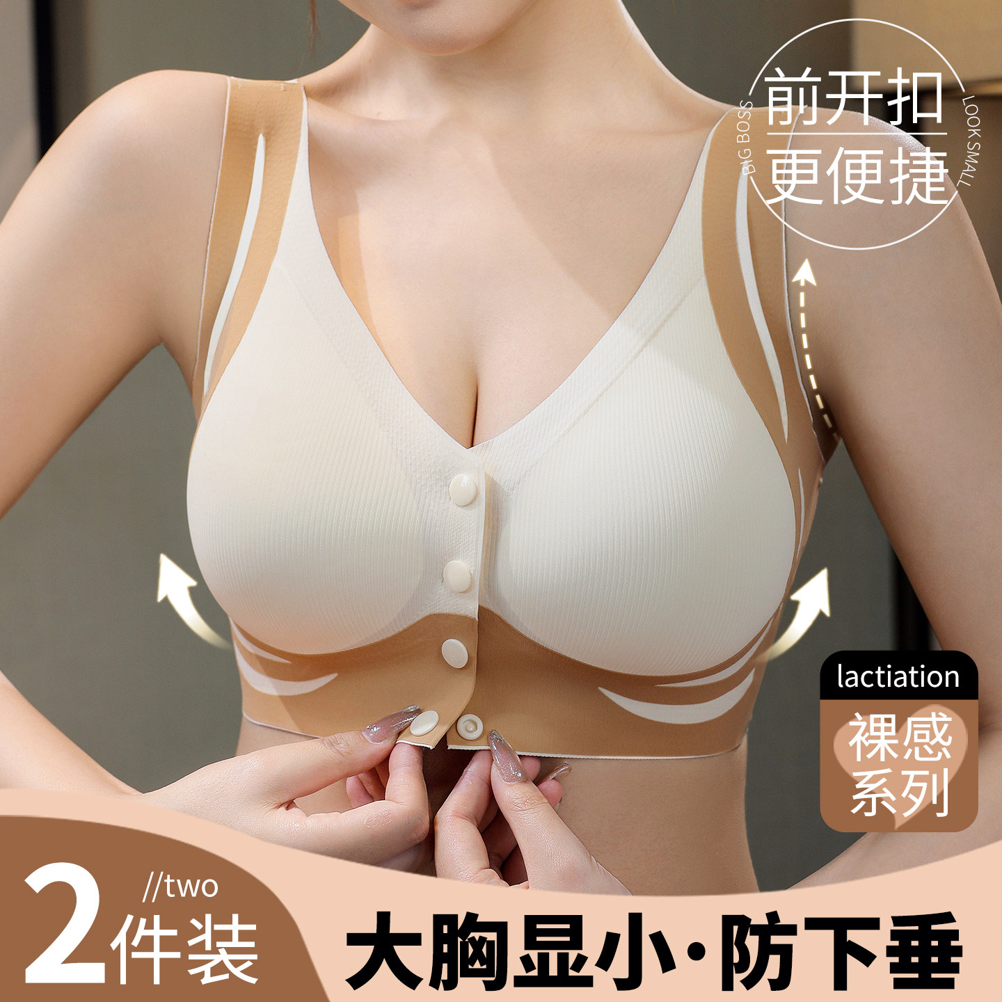 大胸显小大码内衣女孕妇文胸防下垂收副乳聚拢胖mm妈妈前扣胸罩