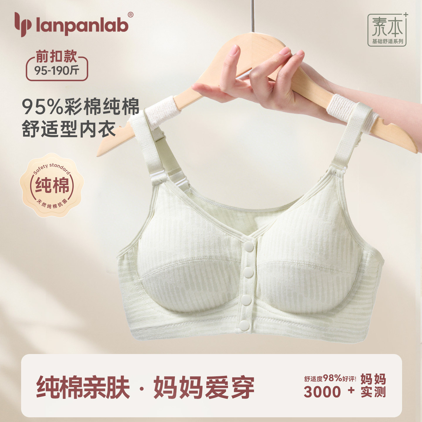 中老年人无钢圈文胸前扣胸罩大码舒适薄款全棉里背心式妈妈内衣女