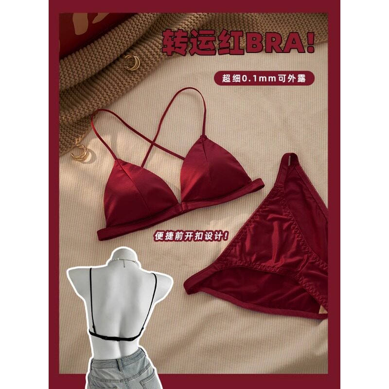 红色本命年内衣女薄款显小前扣胸罩无钢圈性感美背细肩带文胸套装