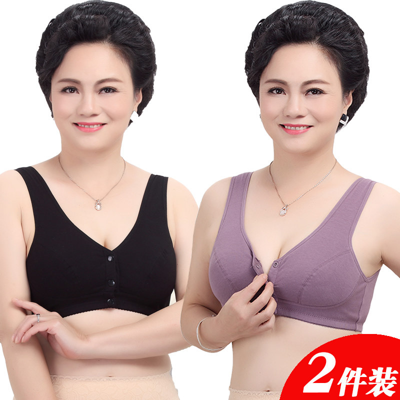 妈妈内衣文胸中老年人无钢圈纯棉薄款背心式中年妇女大码前扣胸罩