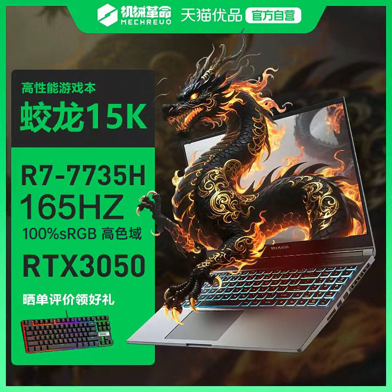 MECHREVO/机械革命 蛟龙 蛟龙15K 锐龙R7-7735H 3050满血独显游戏本15.6英寸轻薄便携手提笔记本电脑