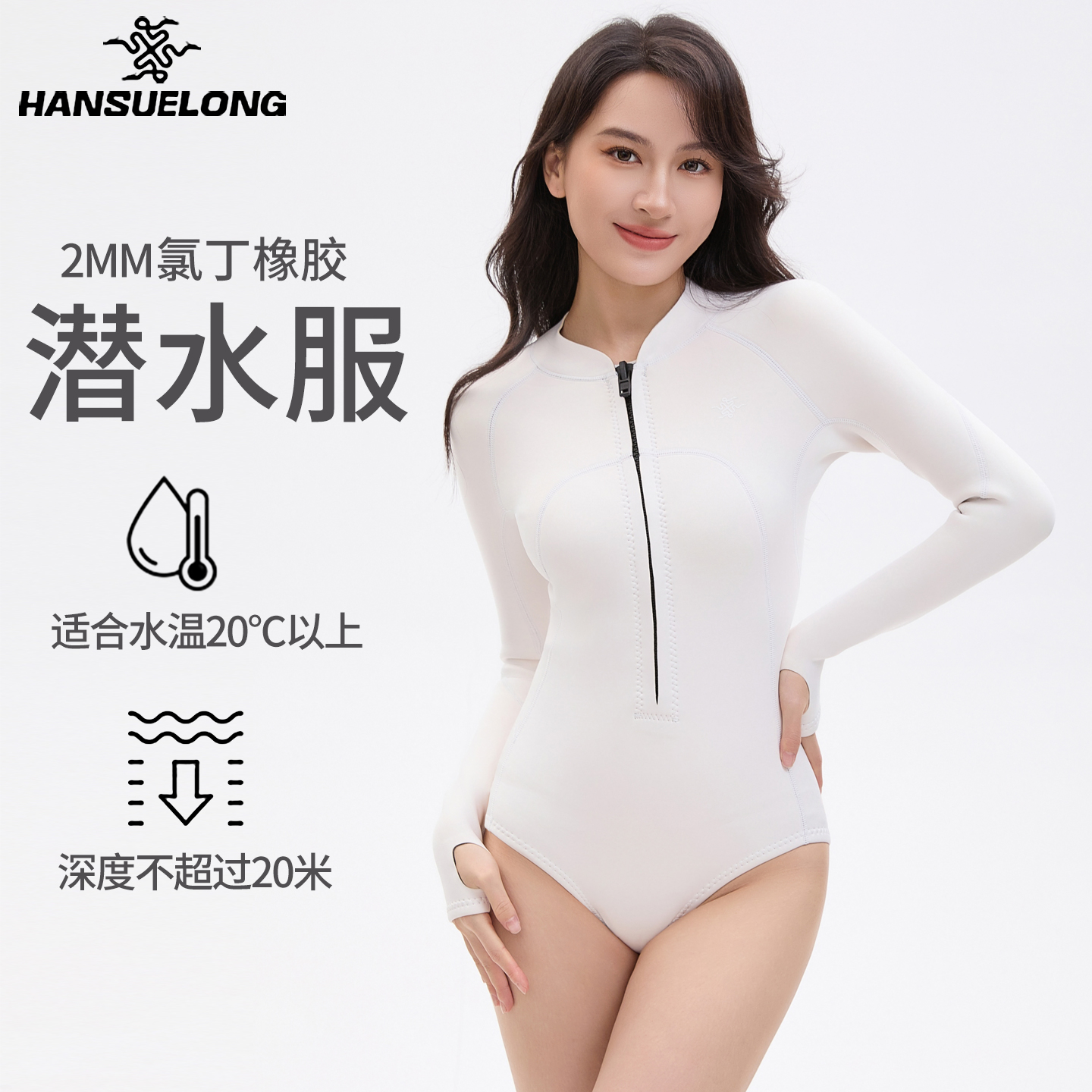 2MM潜水服女连体水母服白色保暖防晒自由浮潜湿衣冲浪泳衣海边潮