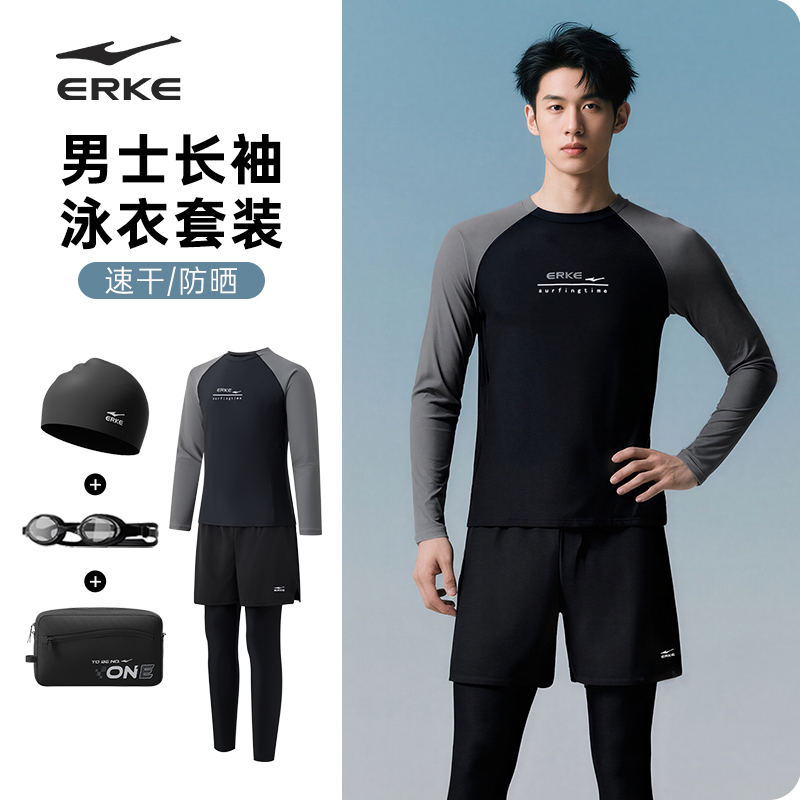 鸿星尔克男士分体套装长袖长裤保暖游泳泡温泉成人浮潜冲浪水母服