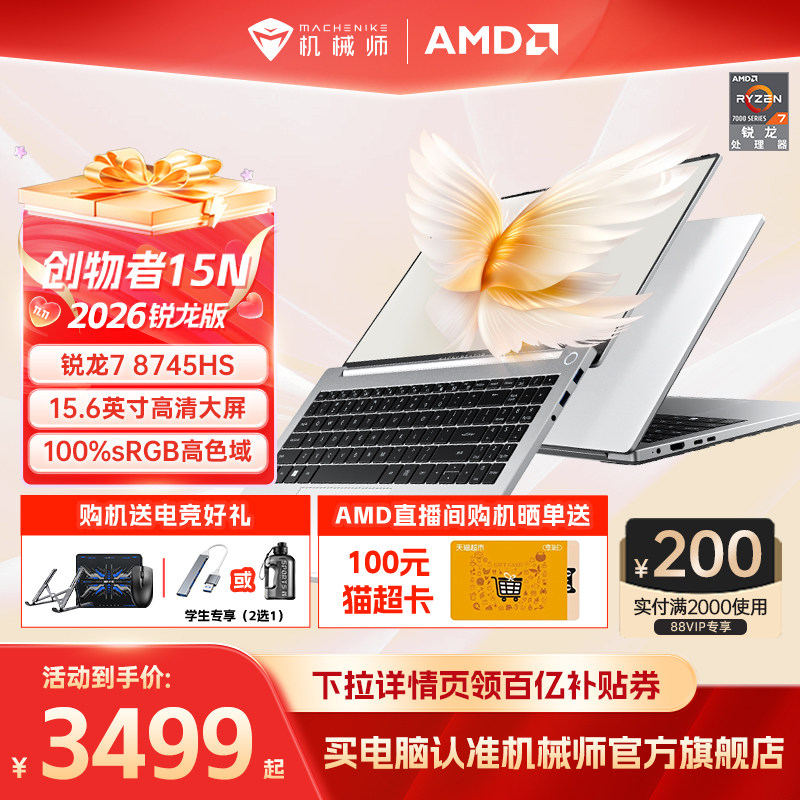 【全国可用换新补贴20%】机械师创物者15N 锐龙7 8745HS 15.6英寸轻薄本学生办公商务手提便携笔记本电脑