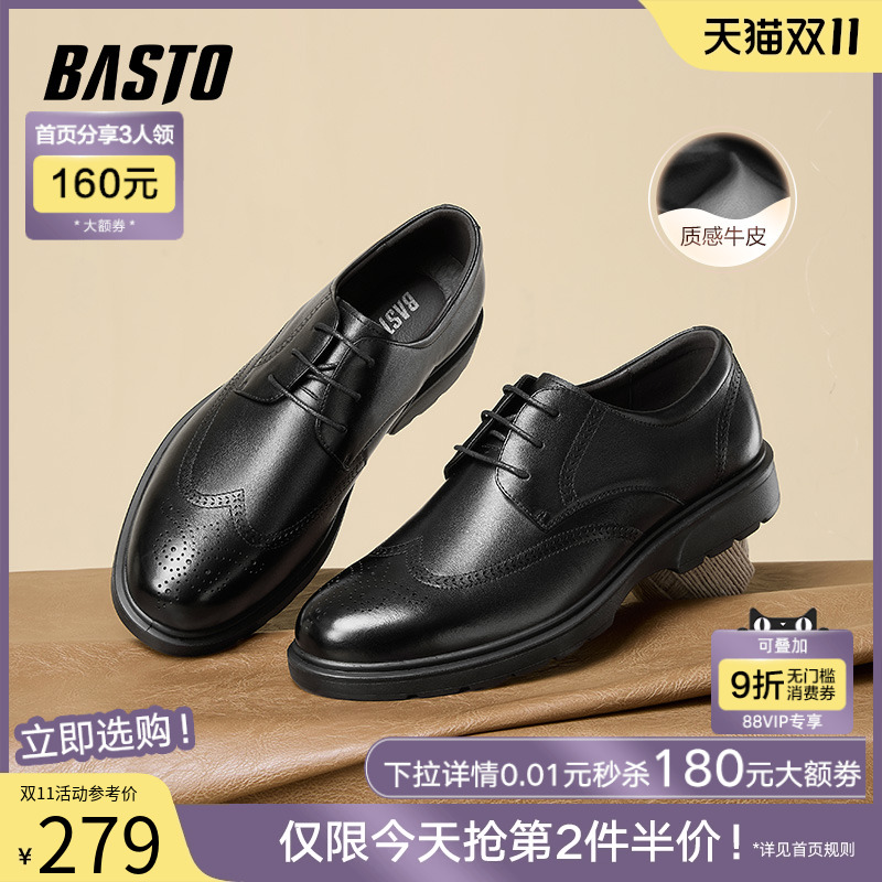 百丽男鞋真皮商务正装皮鞋秋季德比鞋青年上班鞋结婚鞋子6VD01AM0
