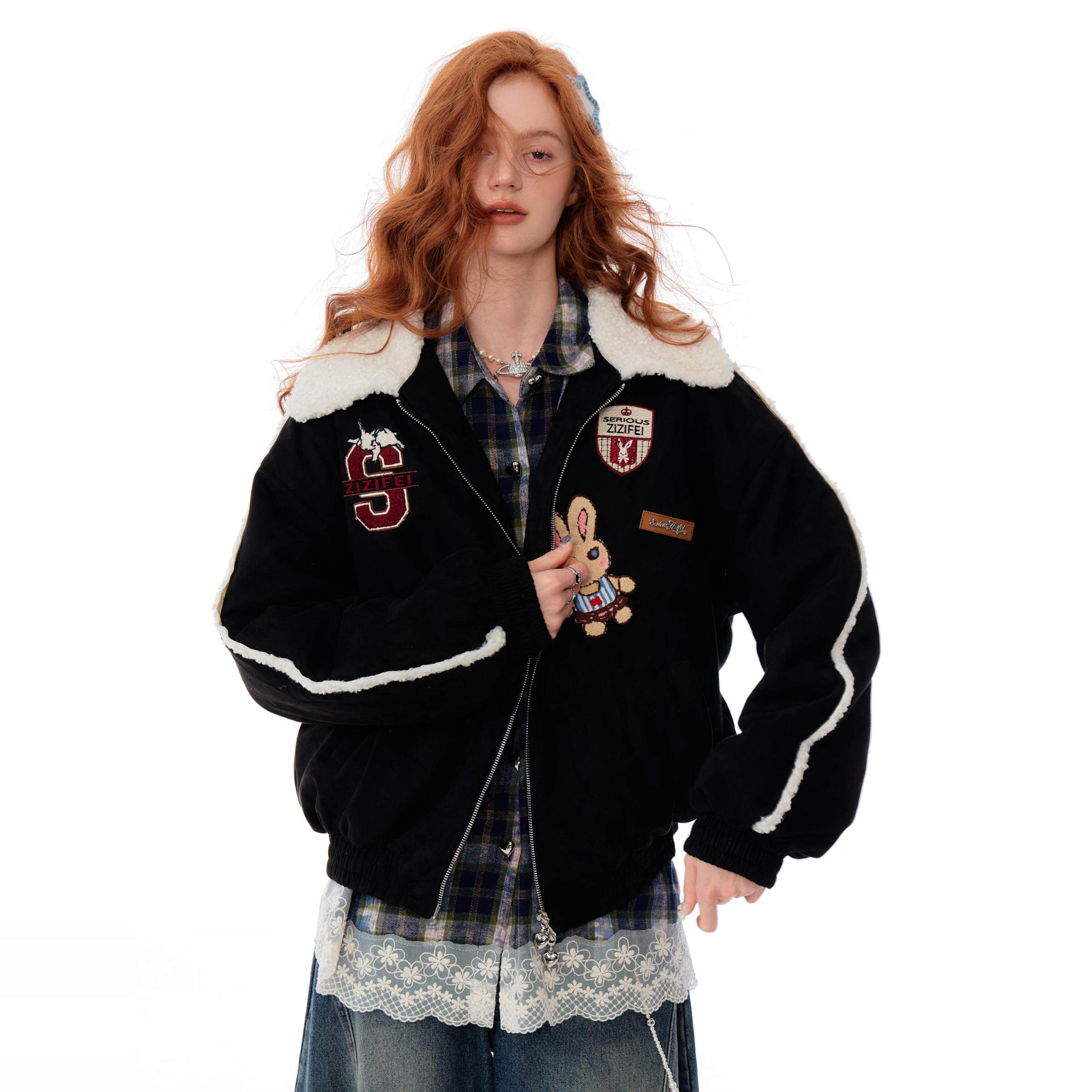 - 羊羔毛牛仔外套女加厚