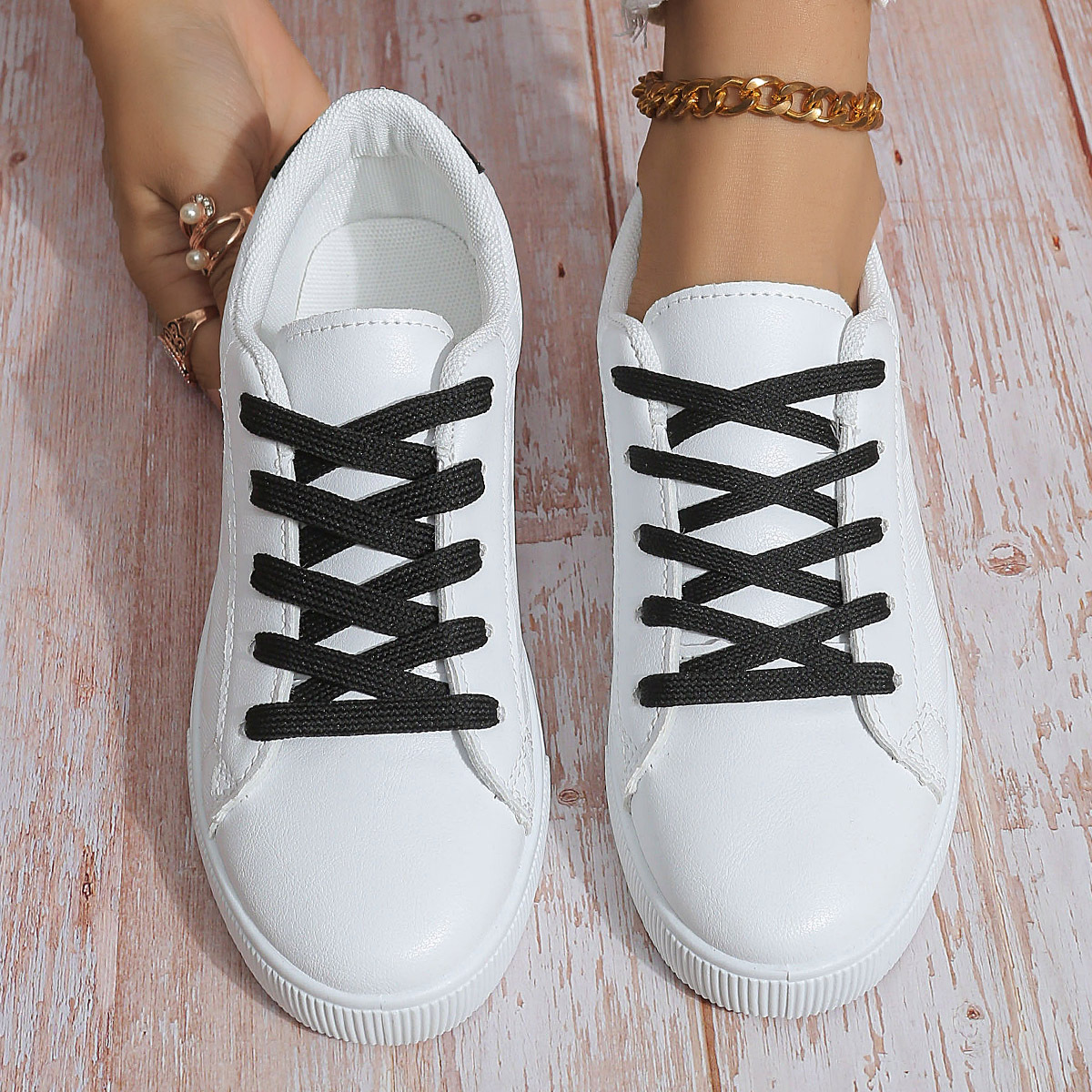 跨境外贸休闲单鞋女2024年春秋季新款平底低跟系带学生运动板鞋女