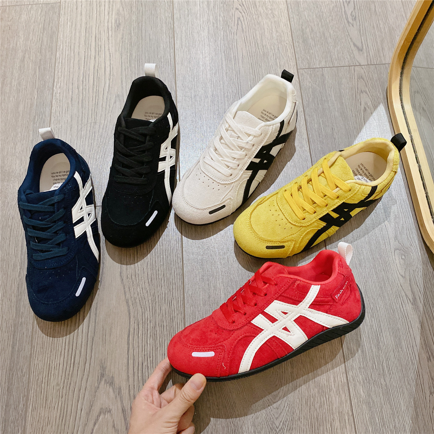 红色系带德训鞋阿甘鞋女2025秋季新款韩版休闲板鞋平底学生运动鞋