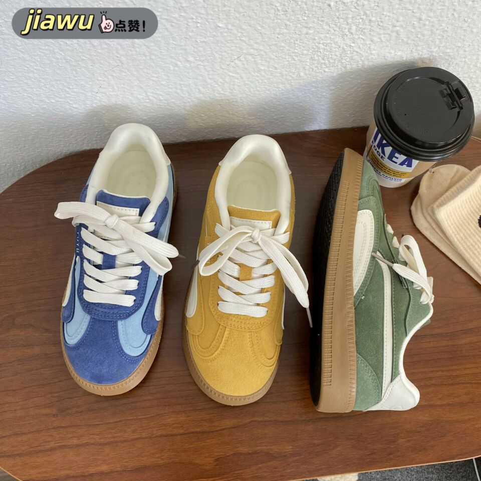 复古真皮软皮德训鞋女2025年新款平底拼色系带学生运动休闲阿甘鞋