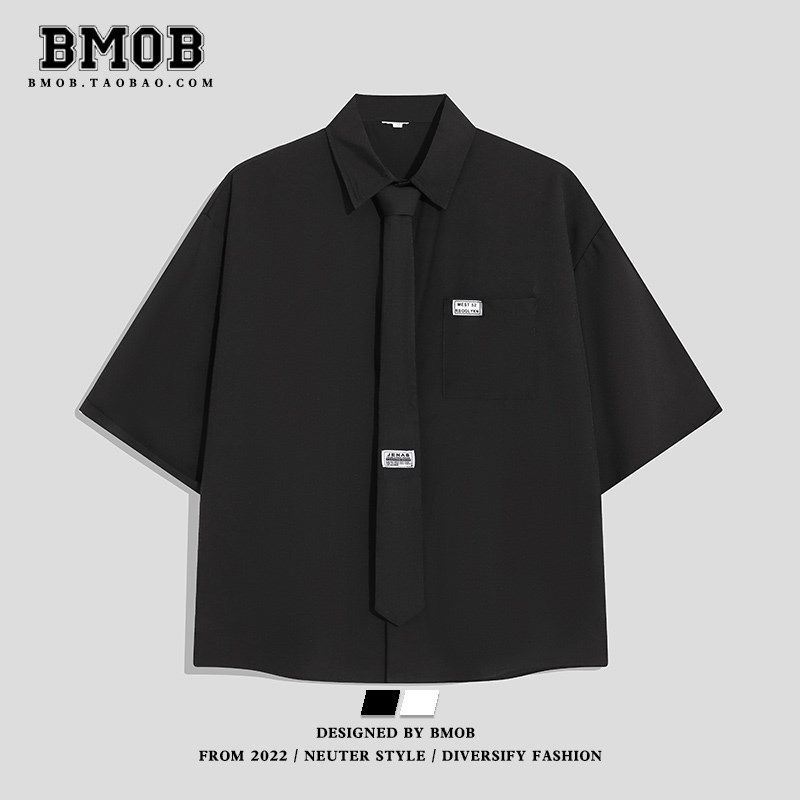 BMOB夏季薄款七分袖领带衬衫男女学院风DK制服班服高级感情侣衬衣