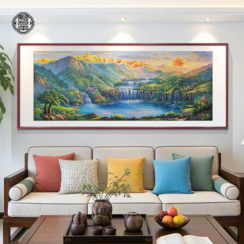日照金山聚宝盆山水画客厅沙发背景墙挂画背有靠山办公室招财风水