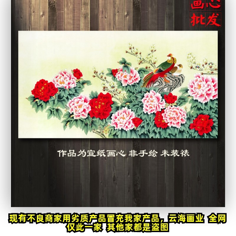 工笔牡丹国画聚宝盆山水画风水靠山招财字画装饰微喷印刷复制画心