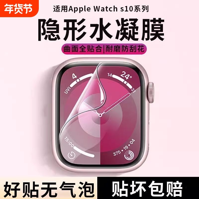 适用iwatch保护膜S10苹果applewatchS11新款s9全屏S8手表盘S7钢化水凝膜S6透明watch4/5全包se屏幕s10贴膜s11