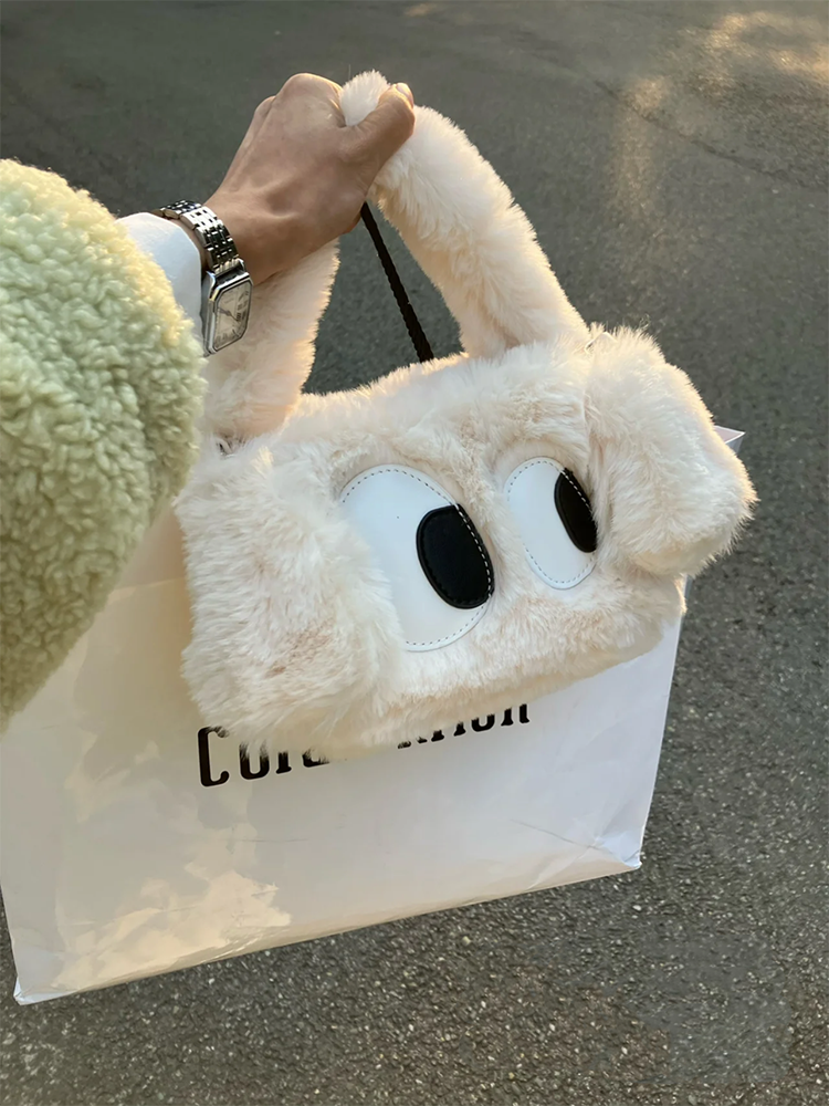 2022冬季新款毛毛包包女潮可爱卡通小狗毛绒手提单肩斜挎包小方包