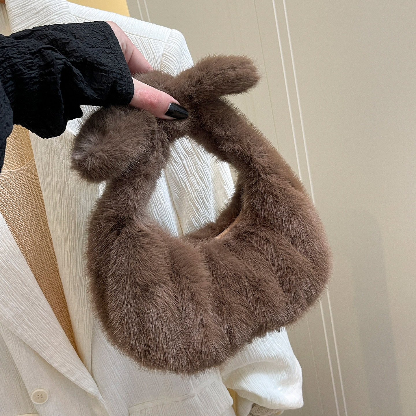 毛绒包包女2025新款可爱兔子手提小圆包斜挎包春季小众百搭毛毛包