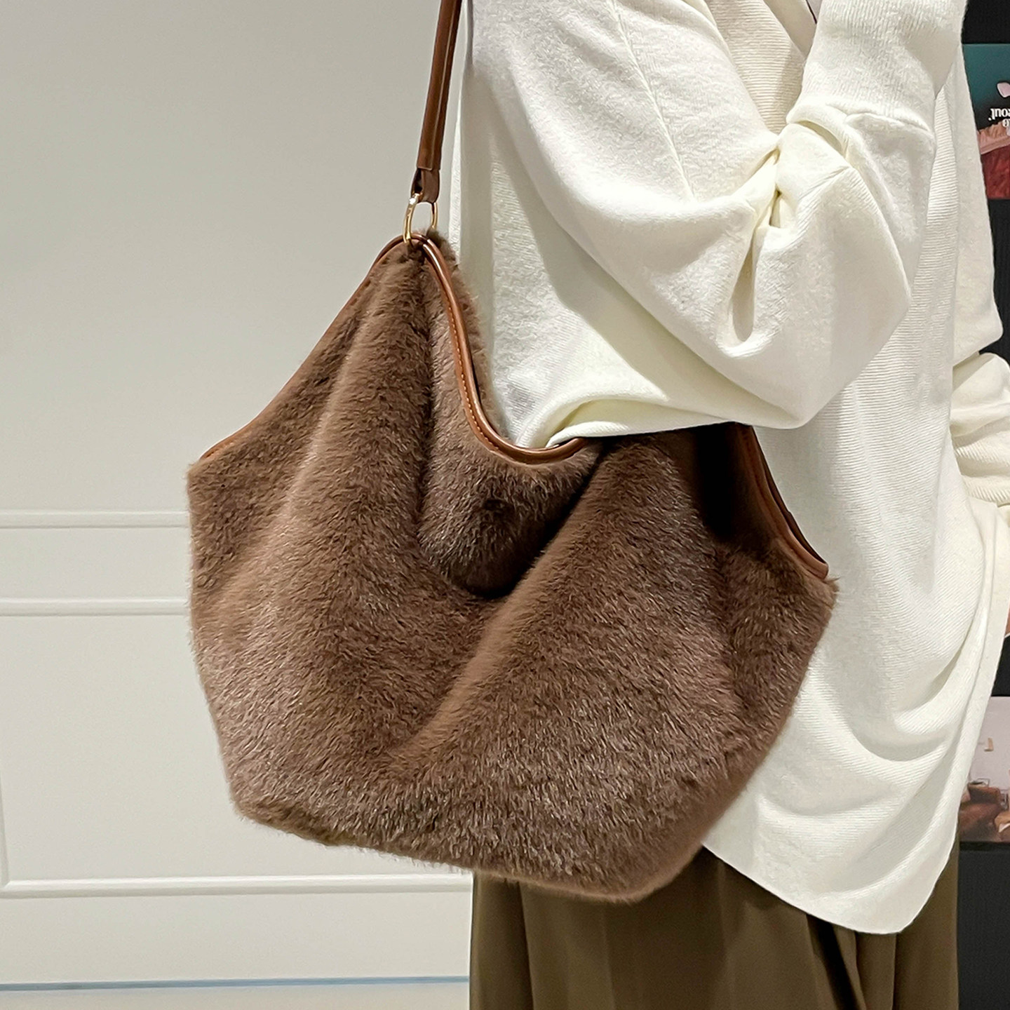 winkouv可爱秋冬毛绒包包大容量毛毛包包女冬季毛茸茸单肩托特包