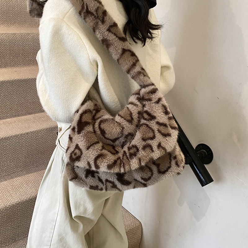 2025新款时尚大容量秋冬毛毛包包女豹纹斜挎包百搭通勤单肩手提包
