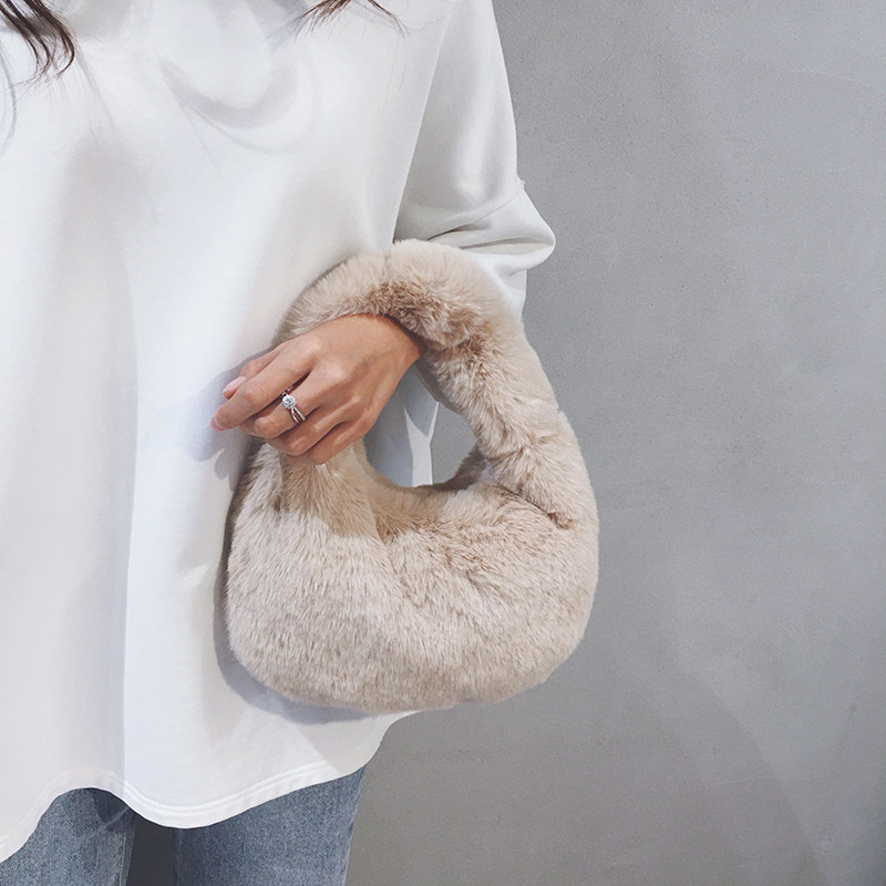 时尚高级感毛毛包包女2025冬季新款洋气手腕包休闲通勤毛绒手拎包
