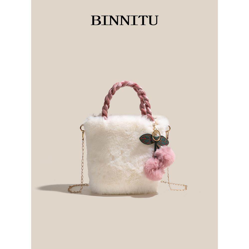 卡通可爱手拎包包女2025新款秋冬质感毛茸茸手提水桶包百搭毛毛包