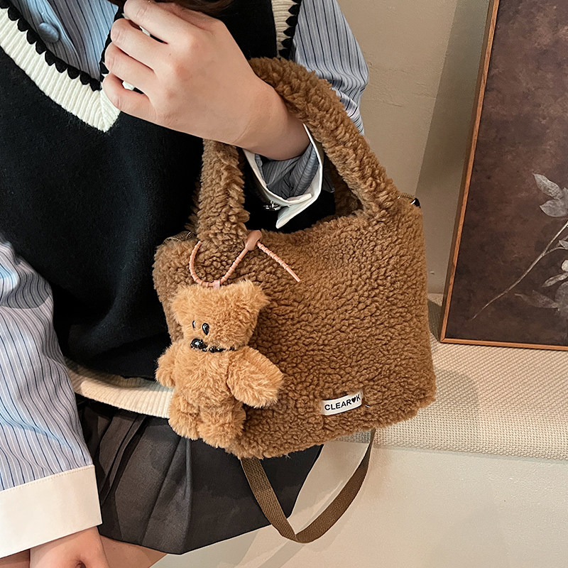 吾尤粒秋冬新款女士毛毛小包可爱羊驼绒布包柔软温暖莫兰迪手提包