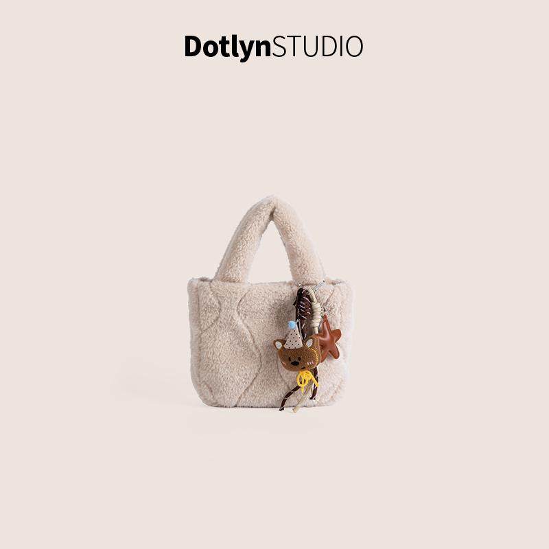 Dotlyn可爱少女纯色毛绒手提包斜挎包日常简约通勤轻便毛毛包包女