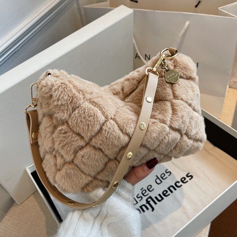 今年流行毛毛包包女2025秋冬新款潮简约单肩包气质通勤毛绒斜挎包