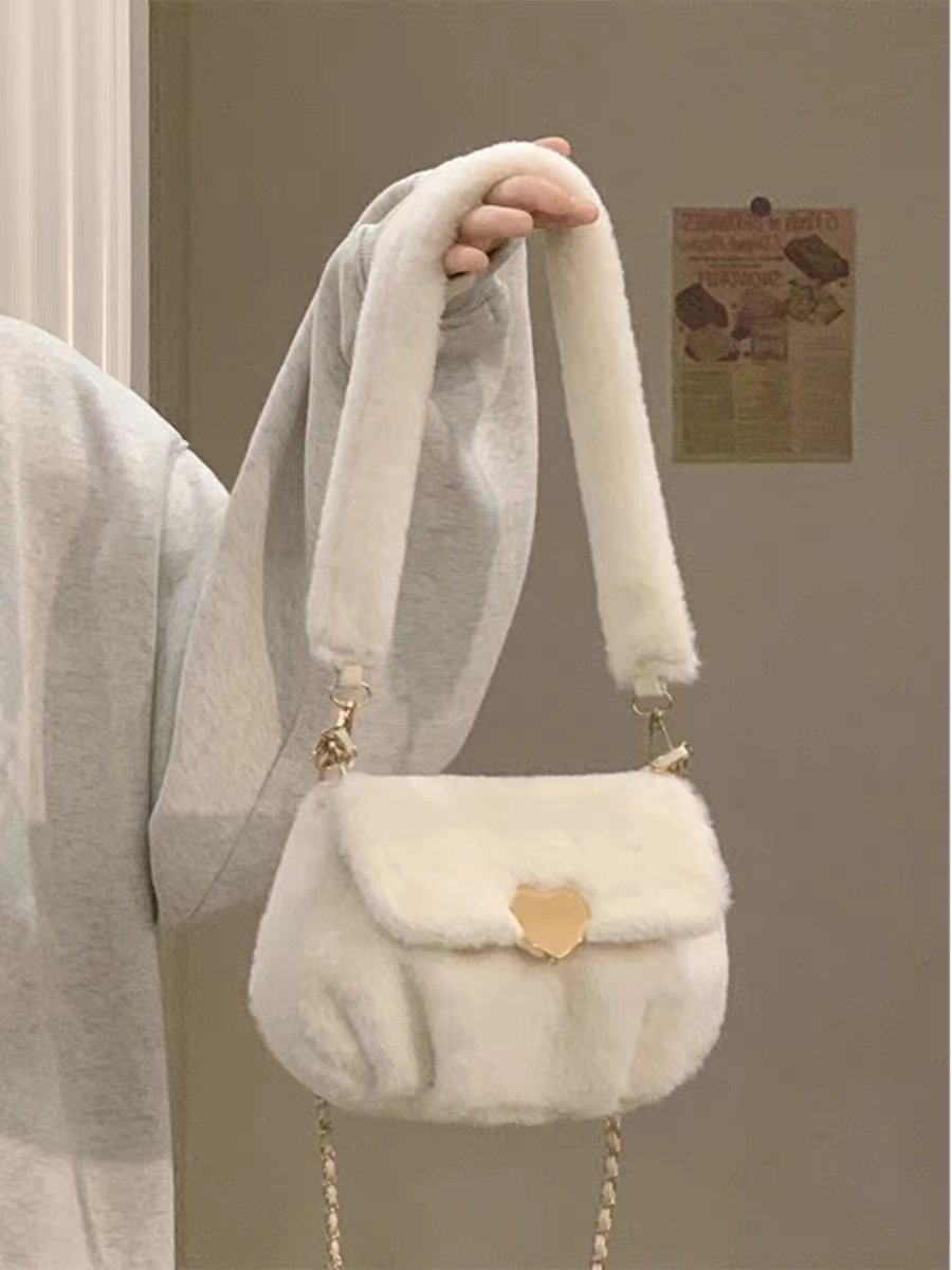 秋冬云朵羊羔毛毛包包女2025新款毛绒链条包百搭爱心包单肩斜挎包