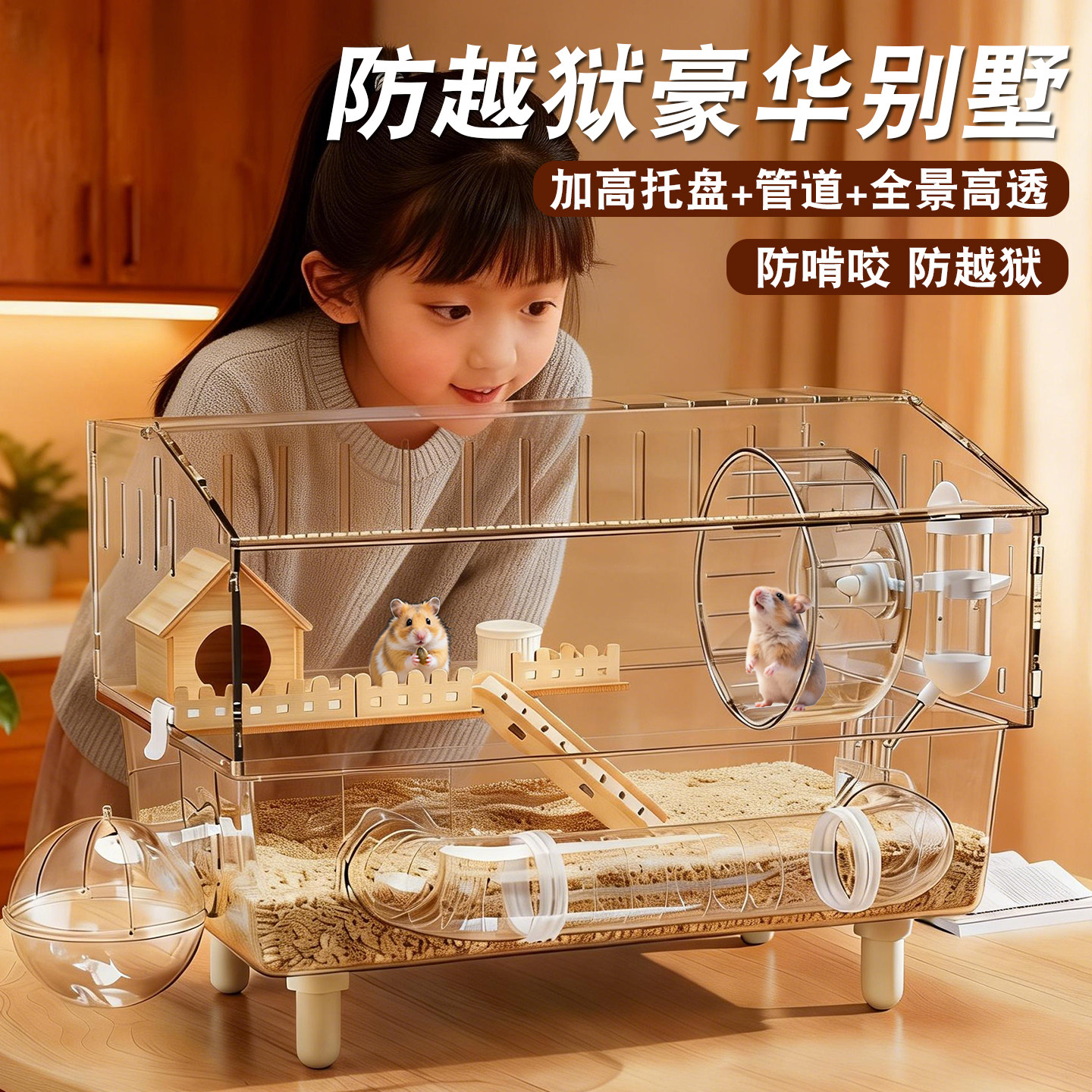 金丝熊小仓鼠笼亚克力防越狱透明专用房子便宜大豪华别墅鼠鼠用品