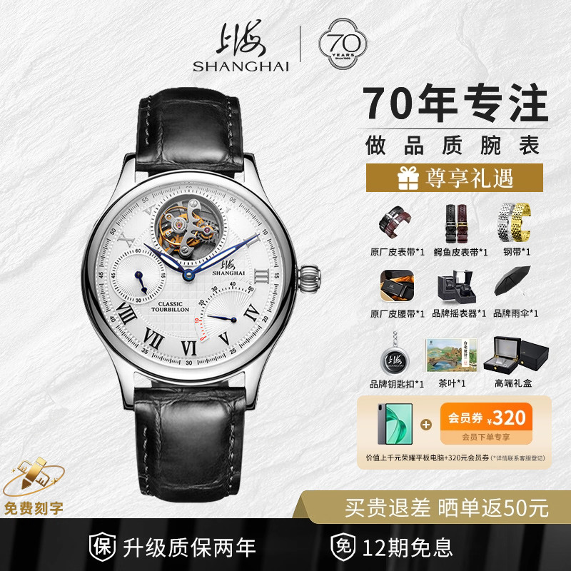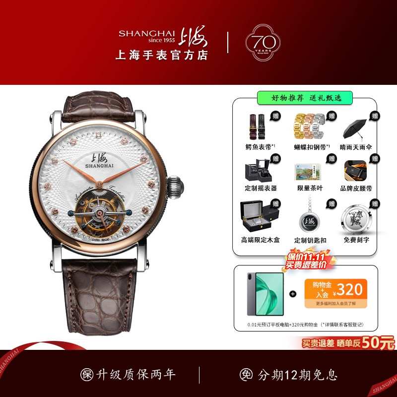 上海(SHANGHAI)手表万象乾川系列偏心自动陀飞轮机械男表多功能