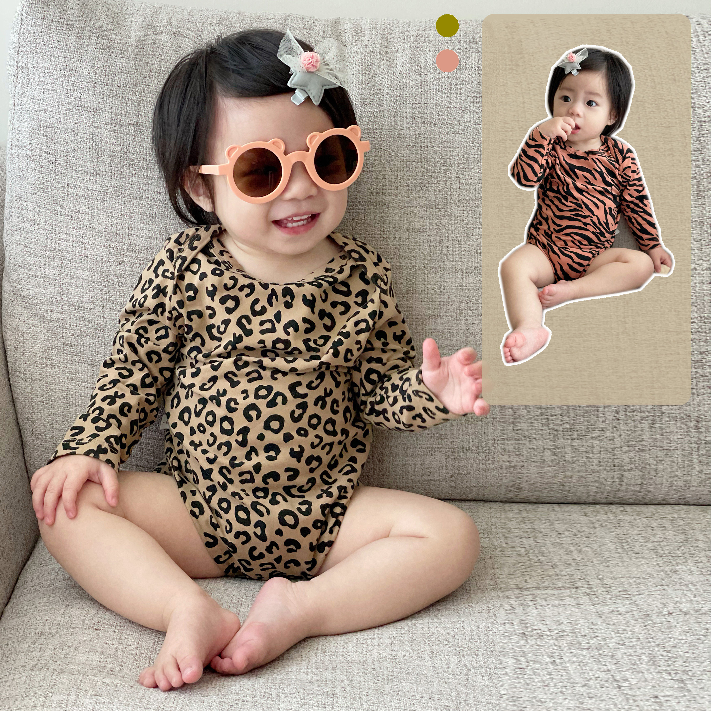 ins洋气豹纹连体婴儿衣服 超萌女宝宝秋装薄款哈衣长袖三角包屁衣