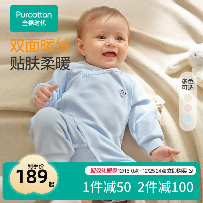 全棉时代婴儿衣服连体衣春秋装风柔棉暖绒满月男女宝宝冬季打底衣