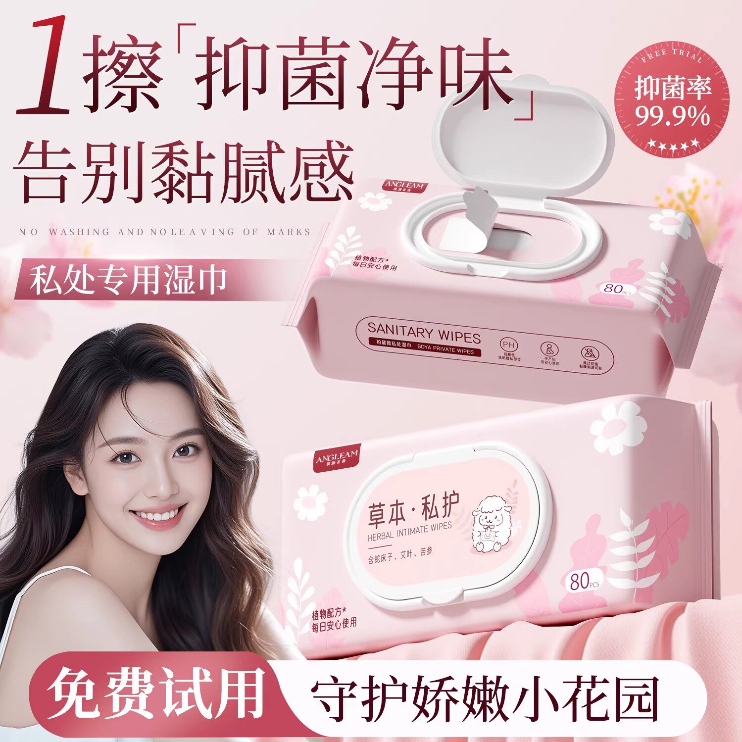 婧麒私处湿巾男女护理湿巾纸卫生可擦私处专用草本房事杀菌湿纸巾